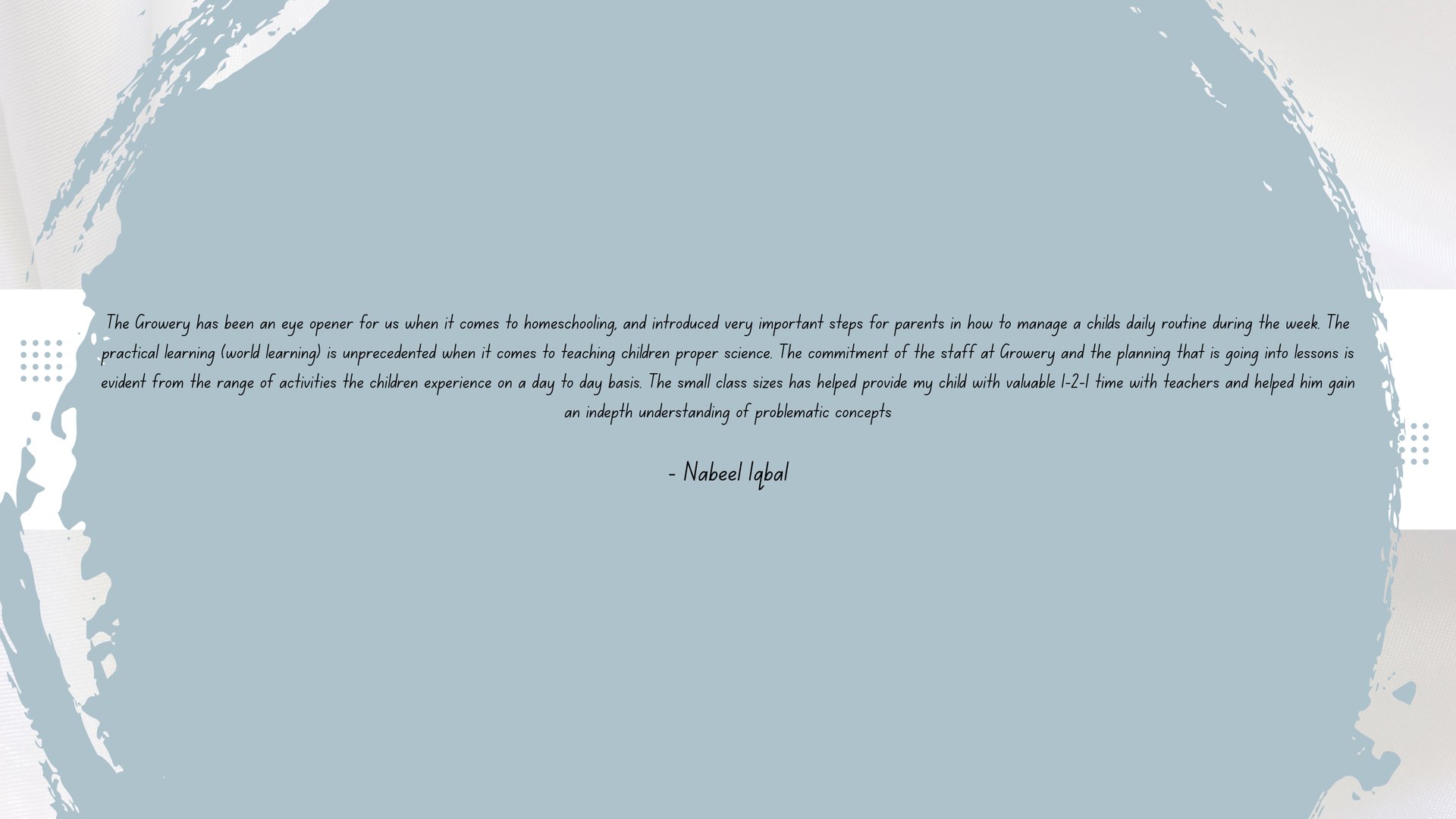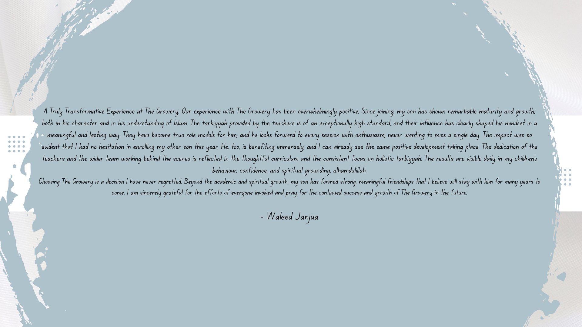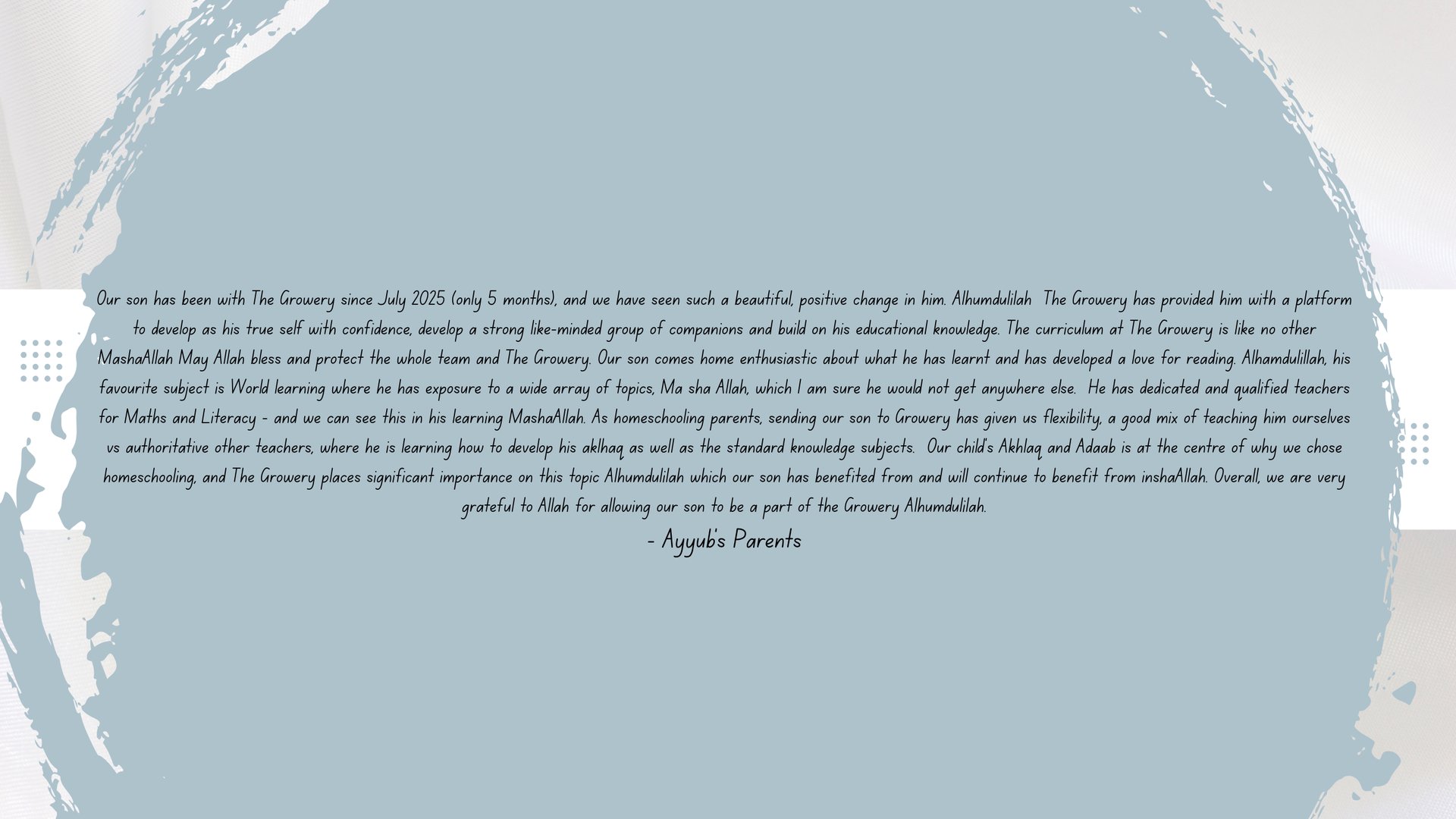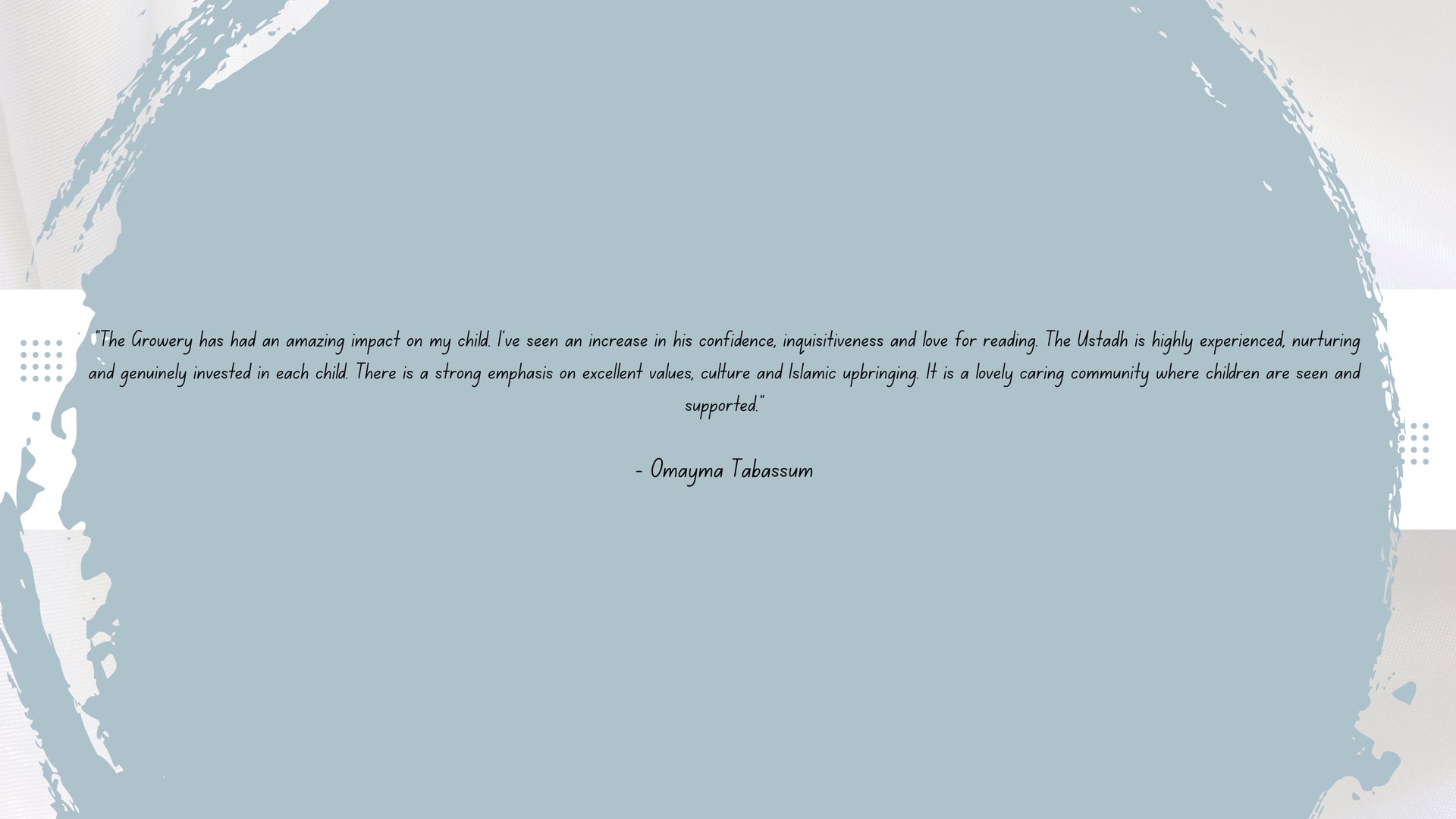 "The Growery has had an amazing impact on my child. I’ve seen an increase in his confidence, inquisitiveness and love for reading. The Ustadh is highly experienced, nurturing and genuinely invested in each child. There is a strong emphasis on excellent values, culture and Islamic upbringing. It is a lovely caring community where children are seen and supported."